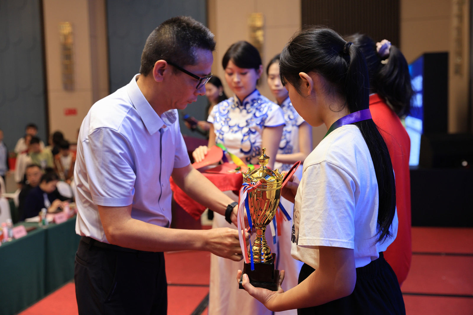 為獲獎選手頒發獎杯和證書
